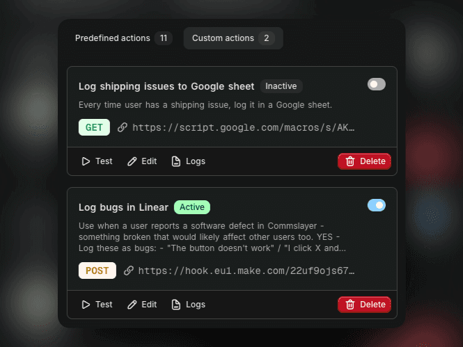 And here’s a guide with examples for Zapier and n8n: https://app.commslayer.com/hc/help-center/articles/1768980277-custom-actions