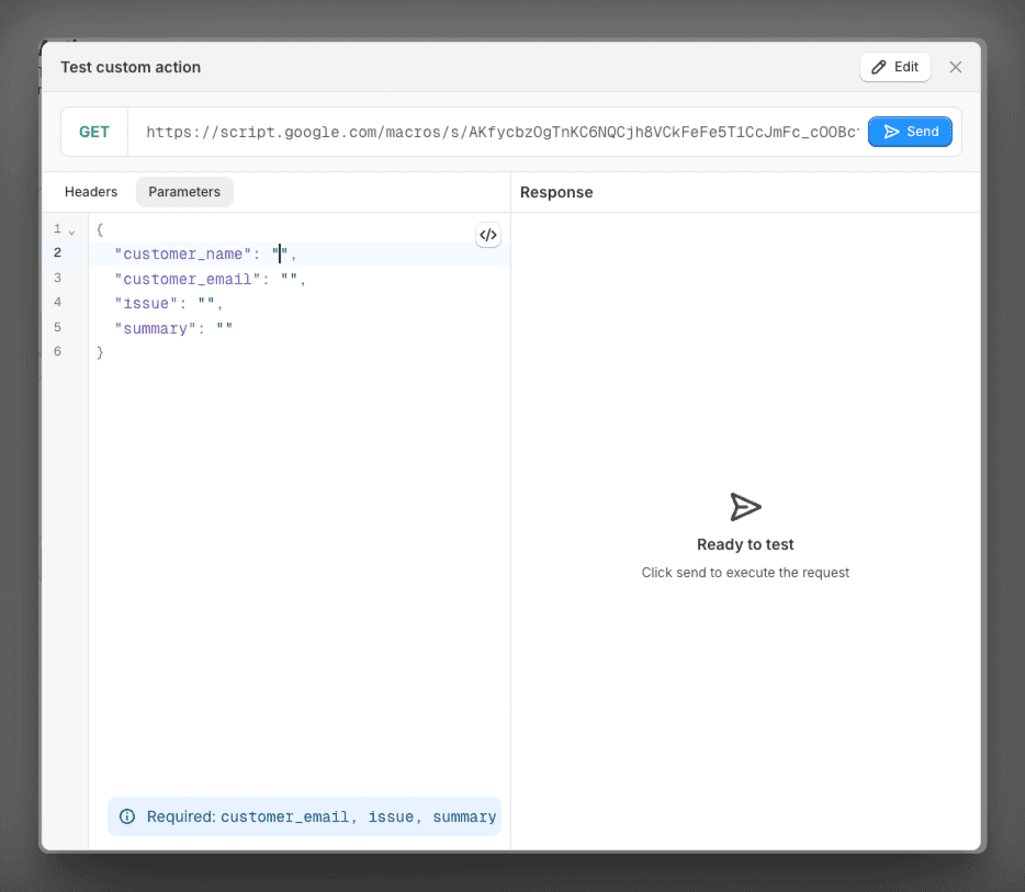 AI custom actions: Connect your AI agent to any external system via webhooks. Check inventory in your 3PL, add loyalty points, create return labels — whatever your workflow needs