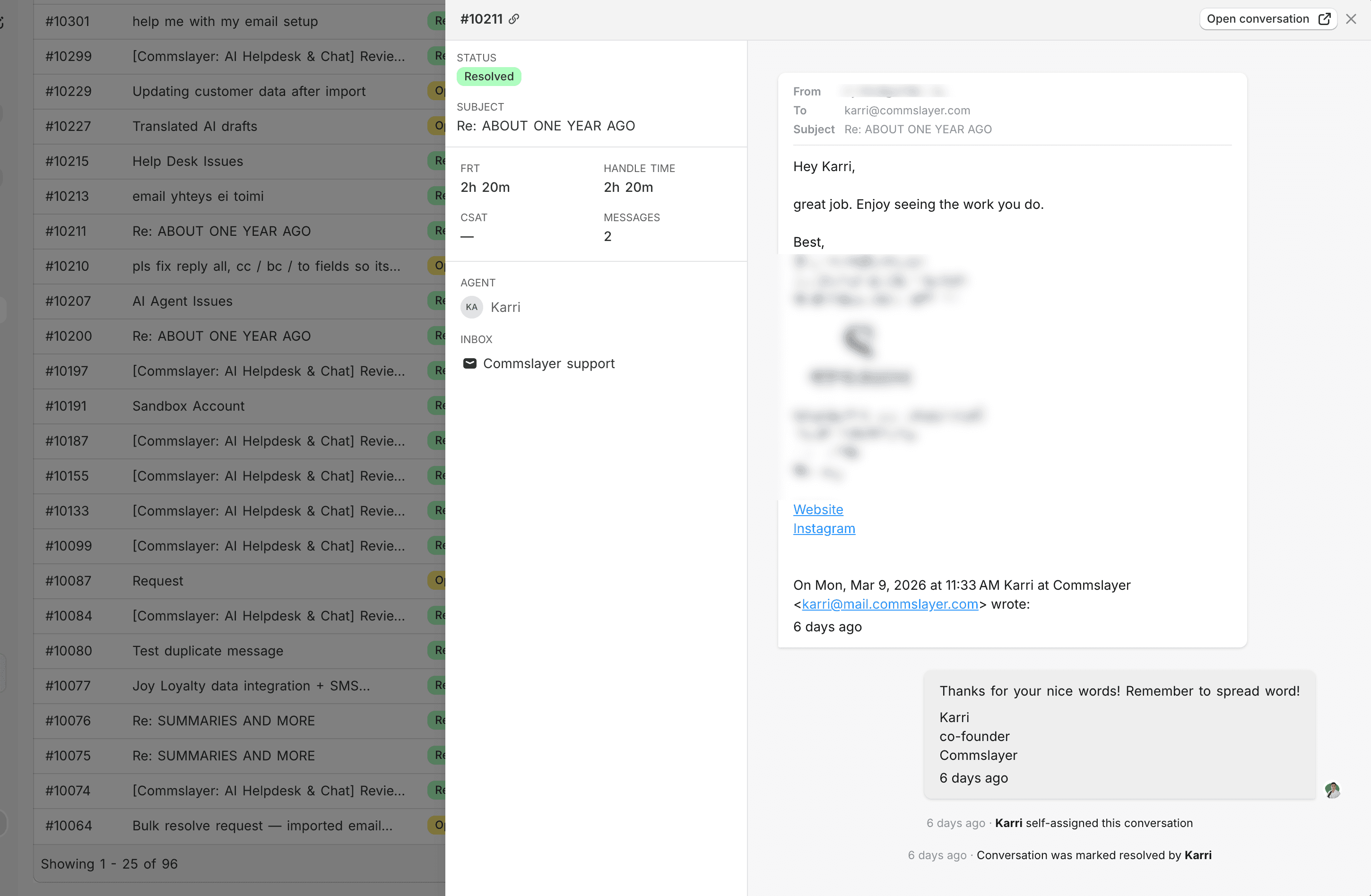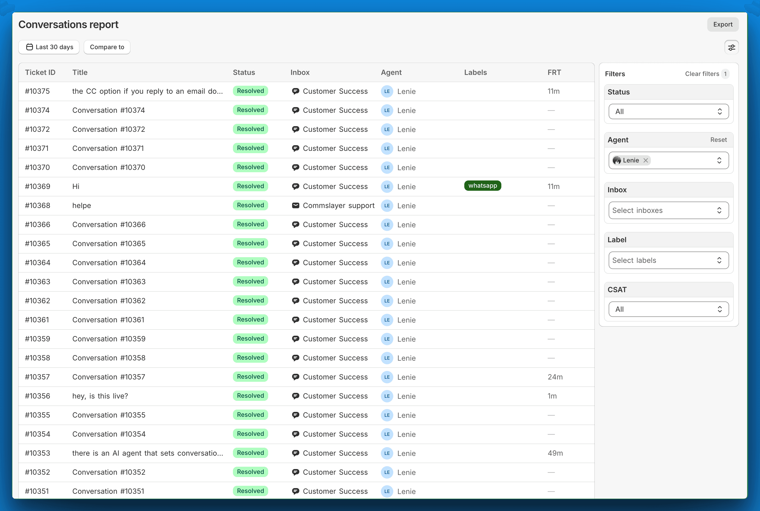 New conversations report makes quality review for all you micromanagers easy. Click any ticket with bad metrics or low CSAT, review the content, copy the link and send the usual cryptic "???" to the assigned support rep to make their day.