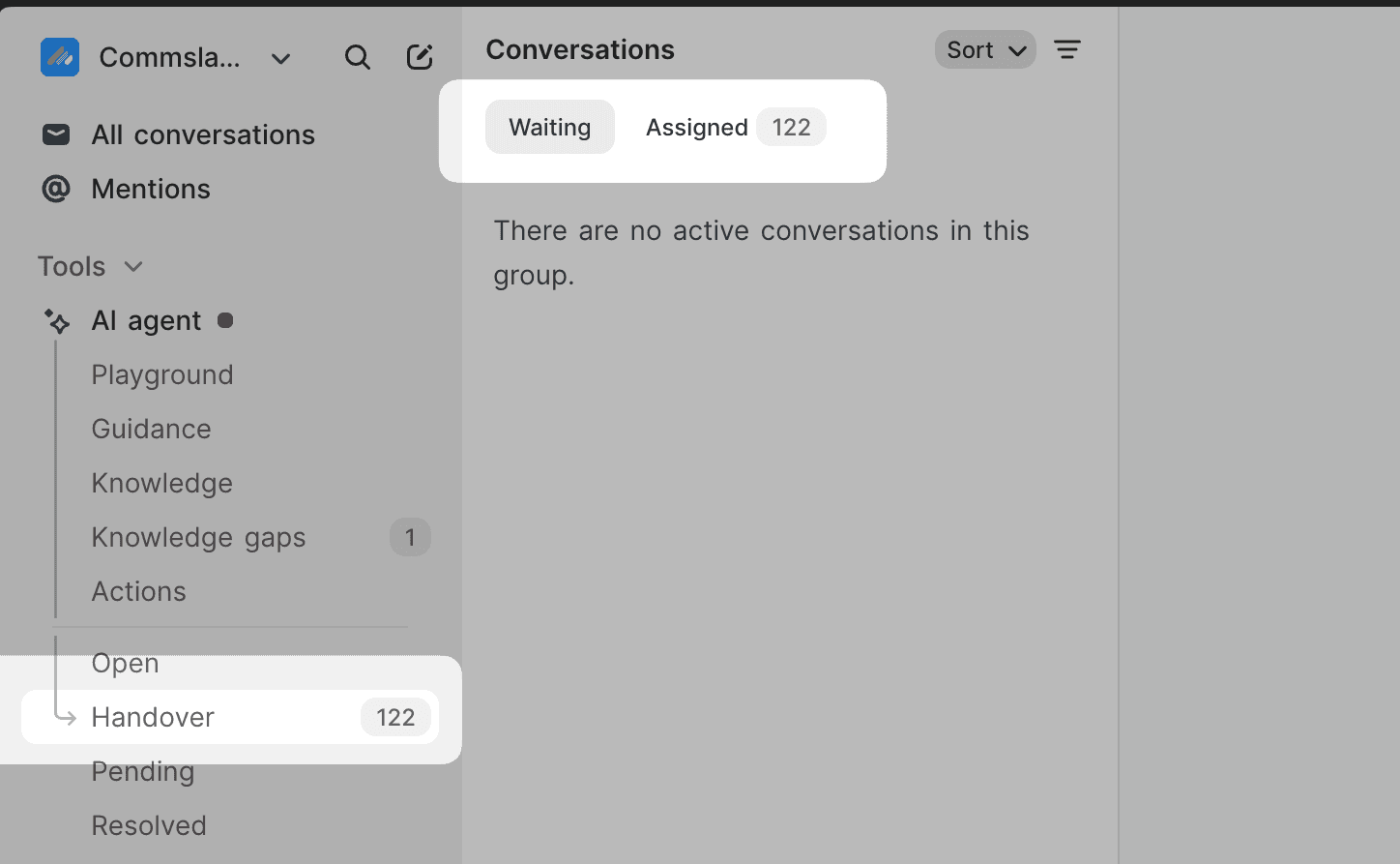 Waiting / Assigned tabs: Handover view now separates conversations waiting for a human vs. already assigned