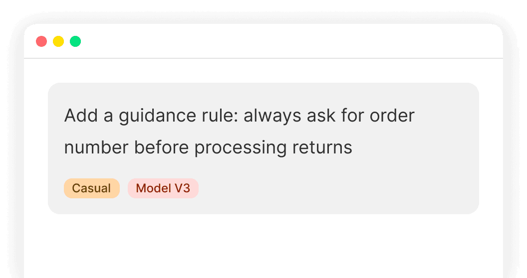 Change rules and canned responses through chat. Keep your AI current without logging into another dashboard.
